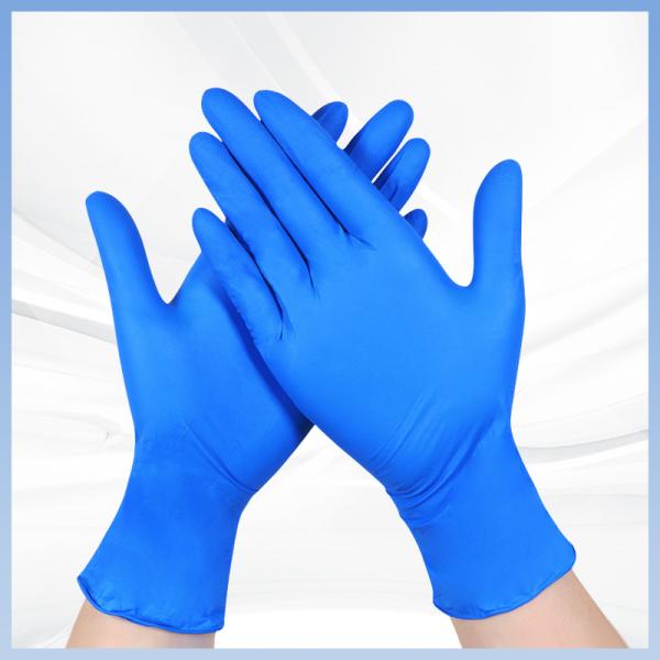 Disposable 9 Inch Blue Nitrile Gloves Acid And Alkali Resistant Images |